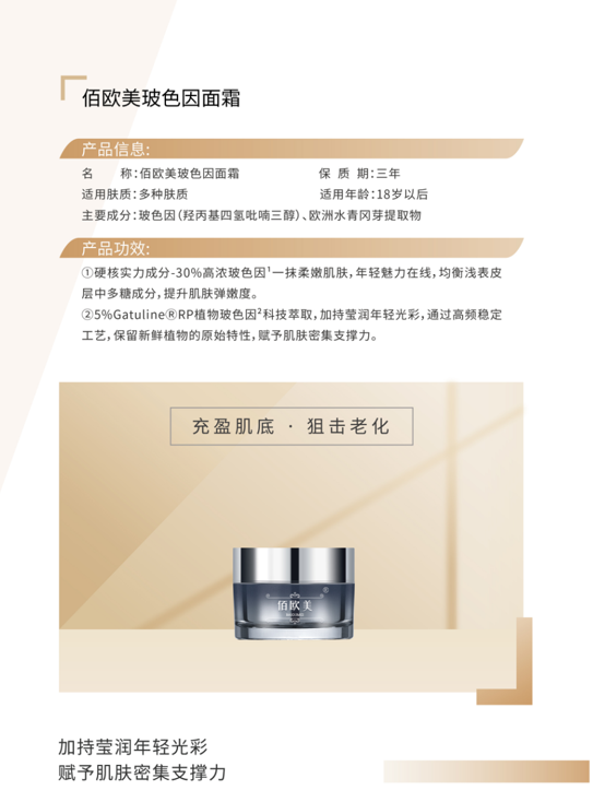 佰歐美玻色因面霜,提升肌膚彈嫩度