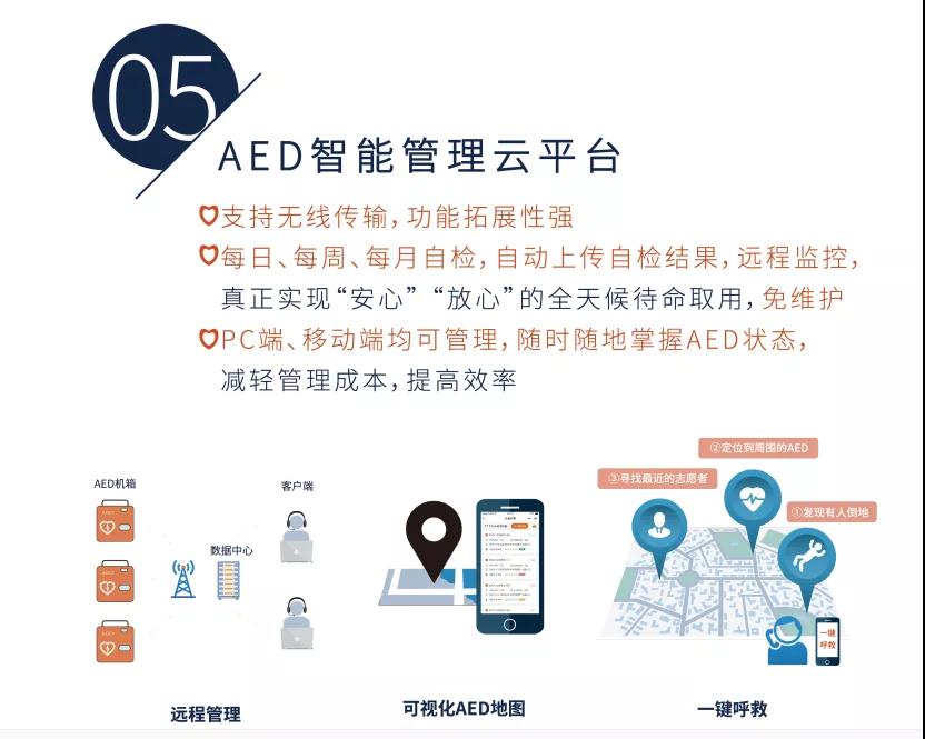 AED是一種能夠自動識別異常心律及時消除室顫,讓心臟的竇房結(jié)重新開始工作,繼而使得心跳恢復(fù)的急救設(shè)備。搶救心跳驟?;颊叩某晒β蔬h(yuǎn)高于徒手心肺復(fù)蘇。其體積小、重量輕、便于攜帶、使用安全,因其操作簡單且內(nèi)置語音提示,便于非專業(yè)人員使用,也被譽(yù)為“救命神器”。