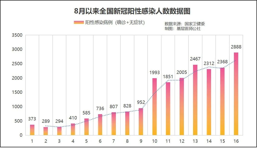 昨日(8月17日)國家最新統(tǒng)計(jì)數(shù)據(jù)顯示,全國昨日新增新冠陽性病例2888例,其中確診病例566例,無癥狀感染2322例。