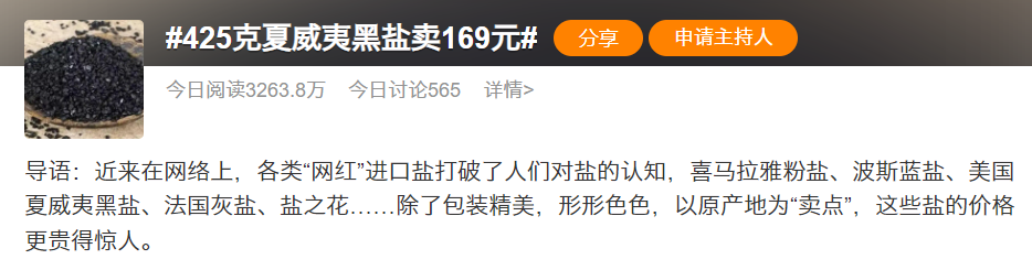 近日,一款425克售價169元的“網紅鹽”