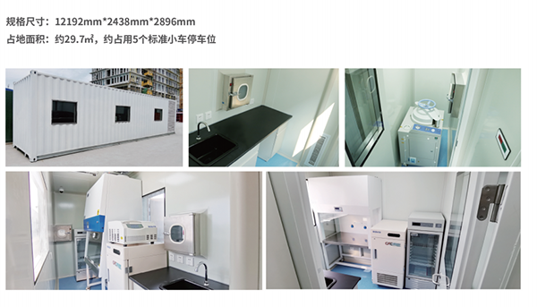 存放占地面積30m3左右。應(yīng)急時(shí)可作為車載實(shí)驗(yàn)室使用,運(yùn)到疫情發(fā)生地時(shí)簡(jiǎn)單調(diào)試即可使用。