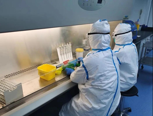 打開樣本前,檢測人員需穿戴好個(gè)人裝備防護(hù)裝備,如防護(hù)服、口罩、護(hù)目鏡、面屏、雙層醫(yī)用乳膠手套、防水靴套,每個(gè)步驟不能出錯(cuò)。