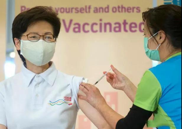 22日下午,香港特區(qū)行政長官林鄭月娥聯同多名司局長,在設于香港中央圖書館的社區(qū)疫苗接種中心接種科興新冠疫苗。她在接種疫苗后表示,感謝中央人民政府促成科興疫苗順利、快速抵港,為香港開啟了走出“疫”境的機會,令一年多來艱苦的抗疫工作迎來曙光。