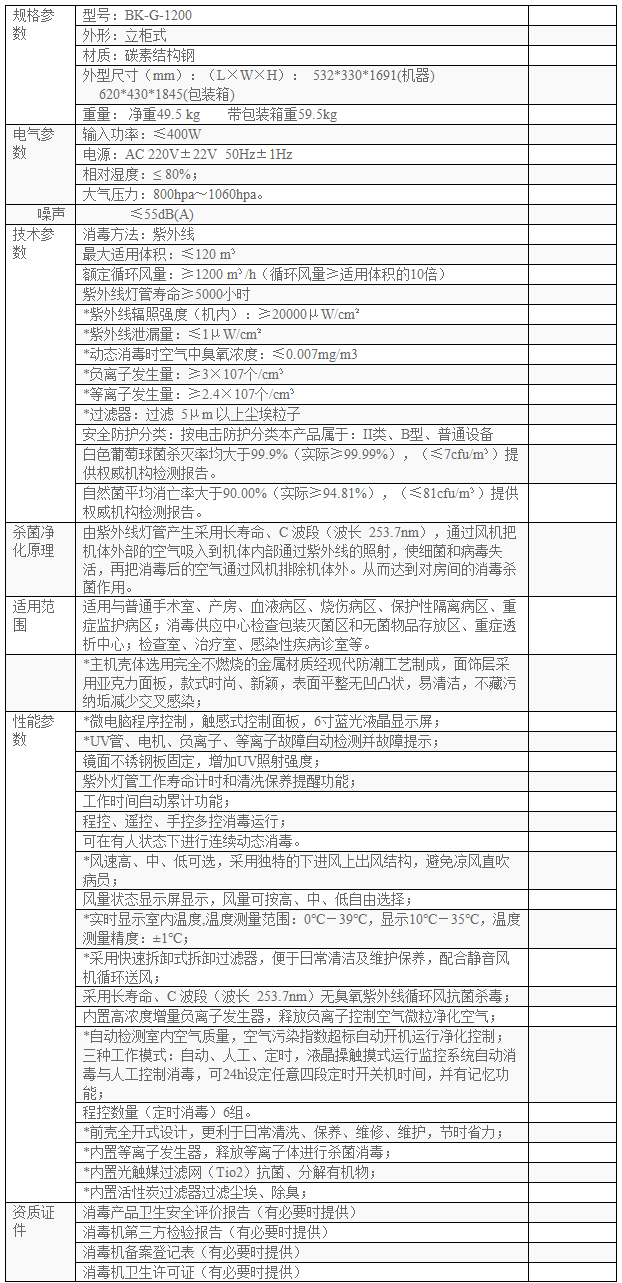 博科BK-G-1200空氣消毒機(jī)性能特點(diǎn)