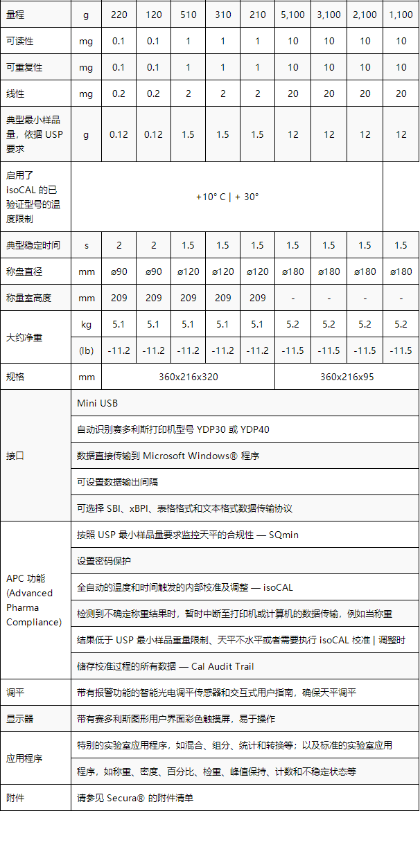 全新的Secura 系列電子天平符合 USP 最小樣品量要求, 確保了操作過(guò)程的一律可靠性。