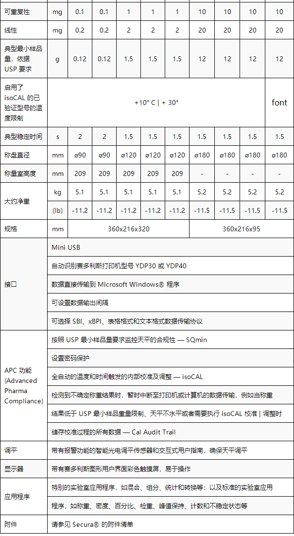 全新的Secura 系列電子天平符合 USP 最小樣品量要求, 確保了操作過程的一律可靠性。