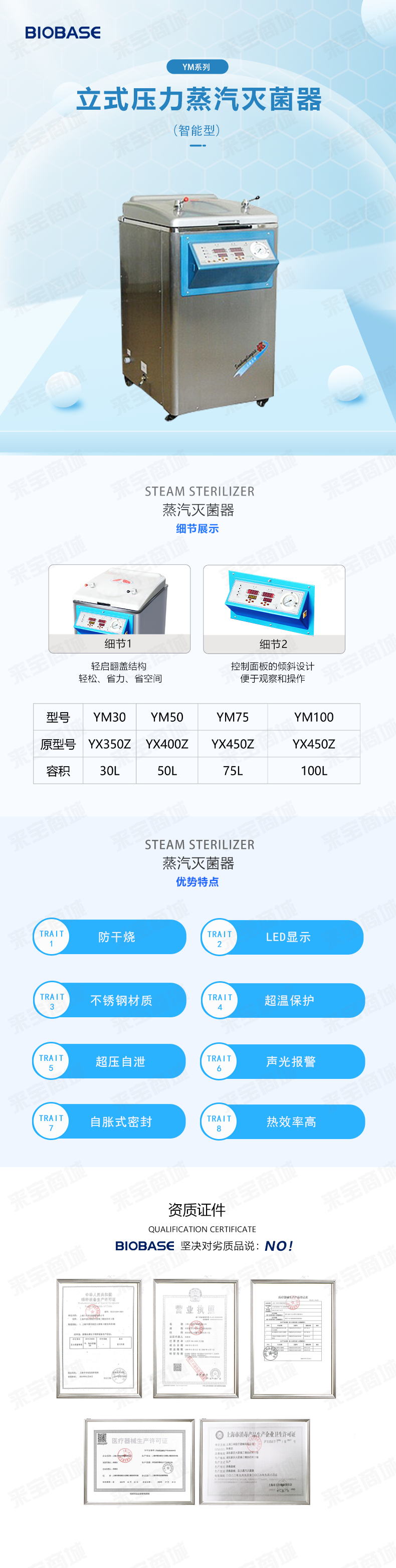 50L,翻蓋式,外排氣。翻蓋式開門更安全,自動(dòng)補(bǔ)水,1-99min滅菌,