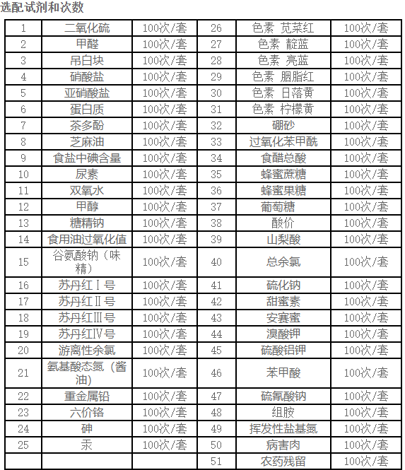 多功能食品安全檢測儀可現(xiàn)場快速檢測非食用化學(xué)物質(zhì)、濫用食品添加劑、農(nóng)藥殘留、獸藥殘留、重金屬、抗生素類殘留、激素類殘留、毒素類殘留、化學(xué)類殘留等200多項目的快速定性定量檢測。如甲醛、二氧化硫、吊白塊、過氧化氫、亞硝酸鹽、蛋白質(zhì)、蜂蜜果糖和葡萄糖、蜂蜜中蔗糖、過氧化值、酸價、白酒中的雜醇油、鉛、汞砷、錫、鎘、硼砂、食鹽中亞鐵氰化鉀、食鹽中碘、過氧化苯甲酰、紅色色素(胭脂紅、莧菜紅)、黃色色素(檸檬黃、日落黃)、藍色色素(亮藍)、食醋的總酸、醬油的總酸、苯甲酸鈉、甜蜜素、木耳中硫酸鎂、芝麻油純度、油脂丙二醛、溴酸鉀、余氯、谷氨酸鈉、揮發(fā)性鹽基氮、山梨酸、糖精鈉、飲料中維C、醬油氨基酸態(tài)氮、肉制品酸價、水中氰化物、水發(fā)產(chǎn)品中組胺、蜂蜜定粉酶、蜂蜜酸度、羅丹明B、三聚氰胺、鹽酸克倫特羅、沙丁胺醇、萊克多巴胺、四環(huán)素類、硝基呋喃類、磺胺類、沙星類、氯霉素、孔雀石綠磺胺類、豬藍耳病毒、豬瘟病毒、黃曲霉毒素B1、豬偽狂犬病毒、豬偽狂犬病毒gE蛋白、豬口蹄疫3ABC蛋白、豬口蹄疫病毒IgG、豬細小病毒、雞禽流感等快速檢測。