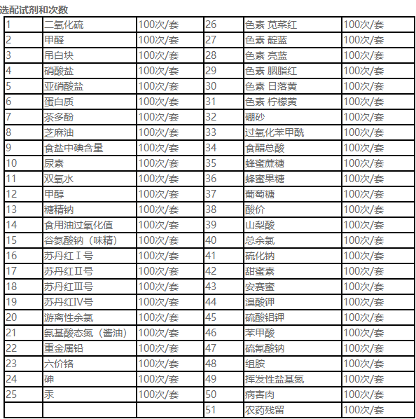 果蔬中:農(nóng)藥殘留,病害肉診斷:組胺、揮發(fā)性鹽基氮、肉制品酸價(jià)、水發(fā)產(chǎn)品中組胺