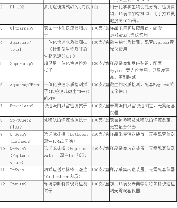 含有新型的高靈敏度液態(tài)穩(wěn)定一體化試劑, 檢測物體表面上的細菌或其它微生物以及食物殘留物中所含的總ATP活性,給出快速全面的潔凈檢測結(jié)果。