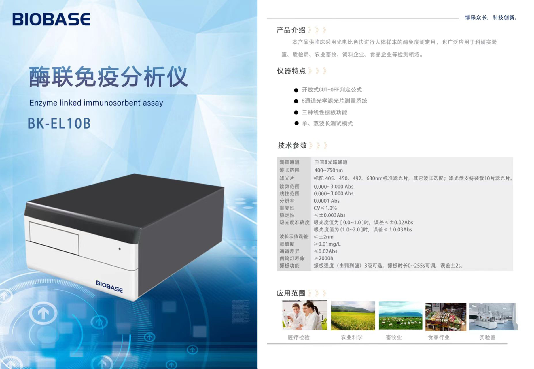 5.濾光片:標(biāo)配 405、450、492、630nm 標(biāo)準(zhǔn)濾光片;濾光盤支持裝載10 片濾光片