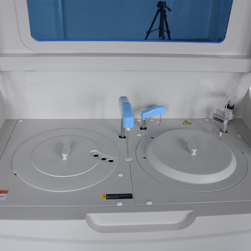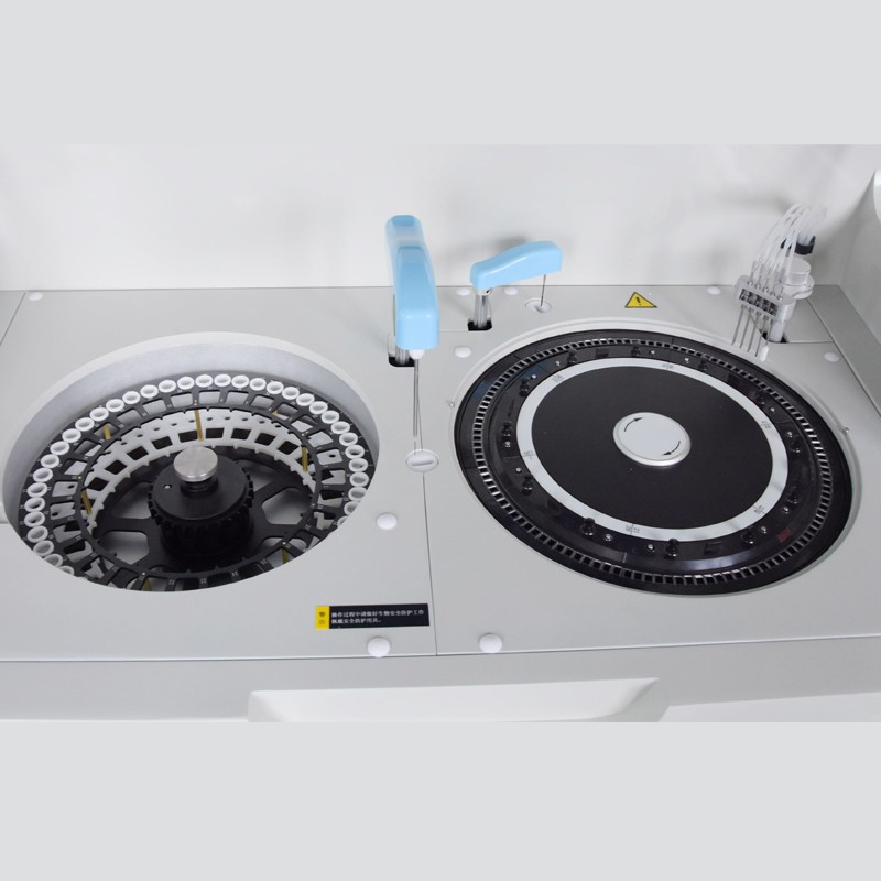 11、試劑盤:56個試劑位,最大可同時分析56個生化試劑項(xiàng)目;同一項(xiàng)目可安排多個試劑位,第一個報警缺少試劑時自動到第二試劑位抽取試劑,依次類推。